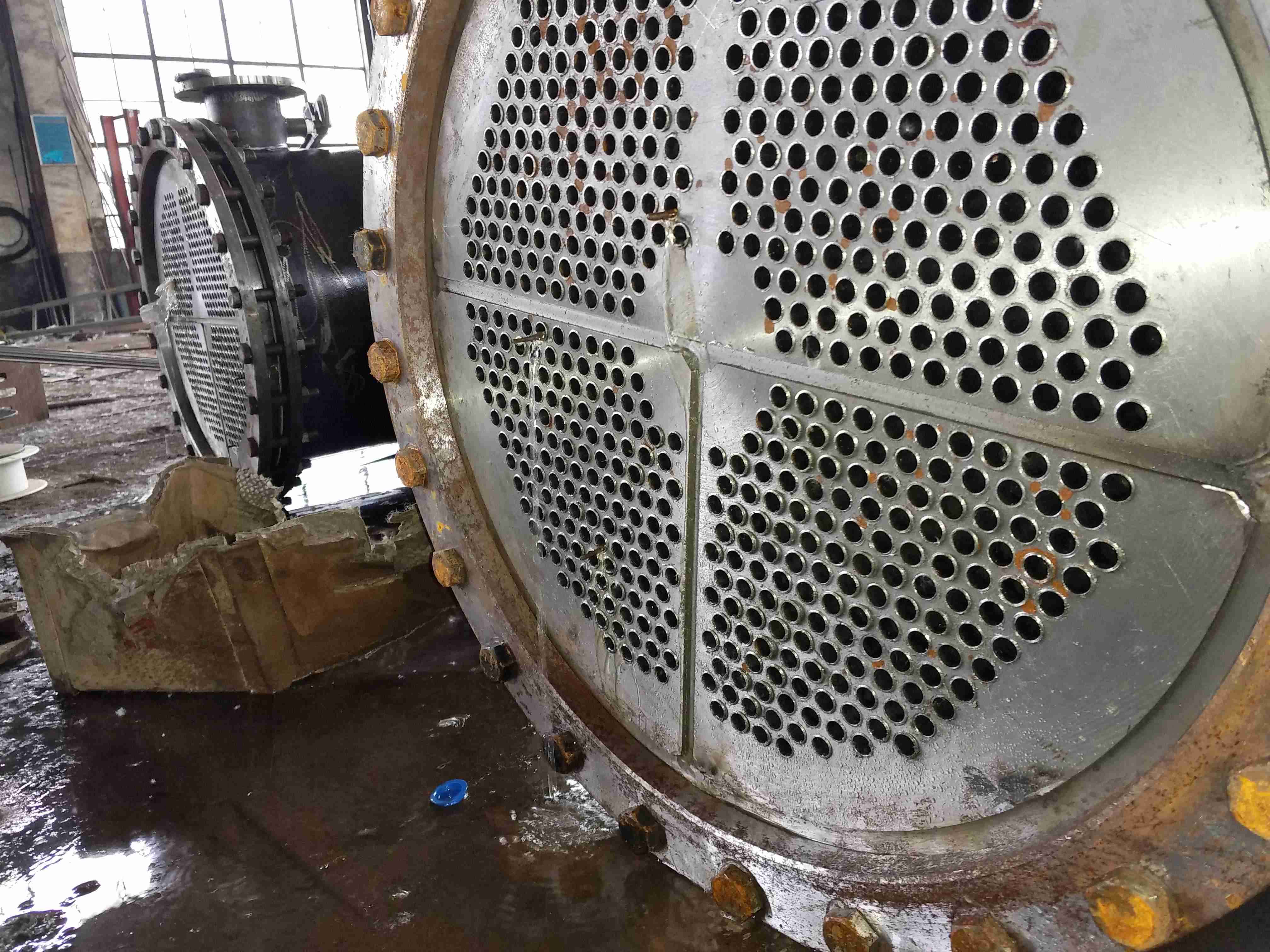 6、列管式冷油器換管換芯改造,基本都是整臺(tái)列管式冷油器設(shè)備拆除貨運(yùn)到我們公司進(jìn)行-換管束。這樣比現(xiàn)場(chǎng)換管經(jīng)濟(jì)---大-勢(shì)換管換芯速度-。列管式冷油器的換管速度慢在管材的生產(chǎn)時(shí)間,因?yàn)槎际橇可碛喿觯懿?了,換管組裝速度也及3-5天時(shí)間就可以完成了!